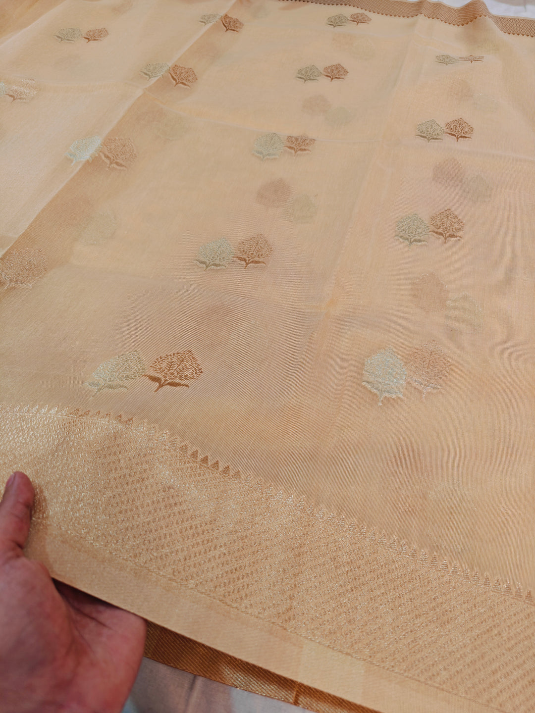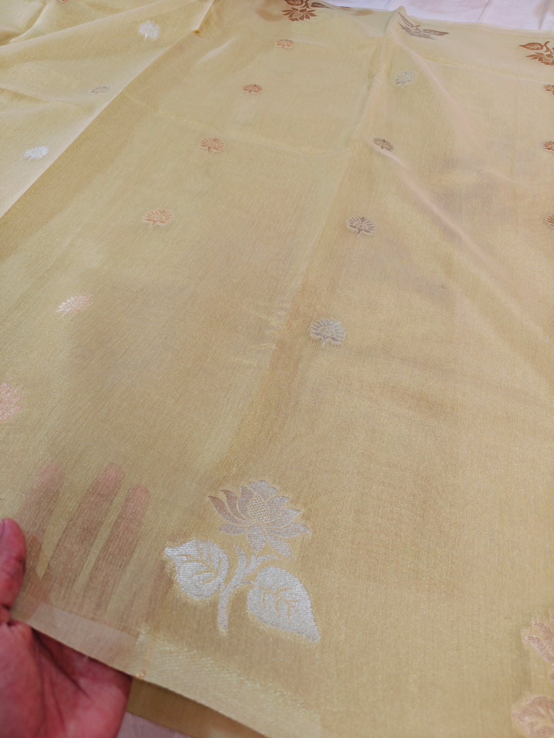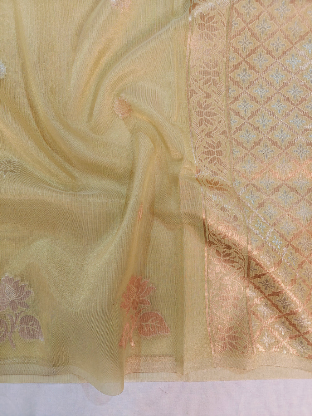 BANARASI PAPER TISU WITH GOLD AND SILVER INTRICATE ZARI WOVEN