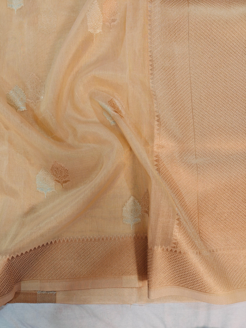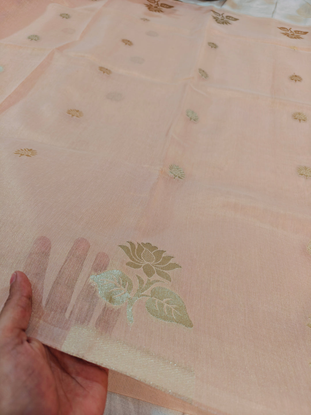BANARASI PAPER TISU IN PEACH SHADE WITH INTRICATE ZARI BOOTI