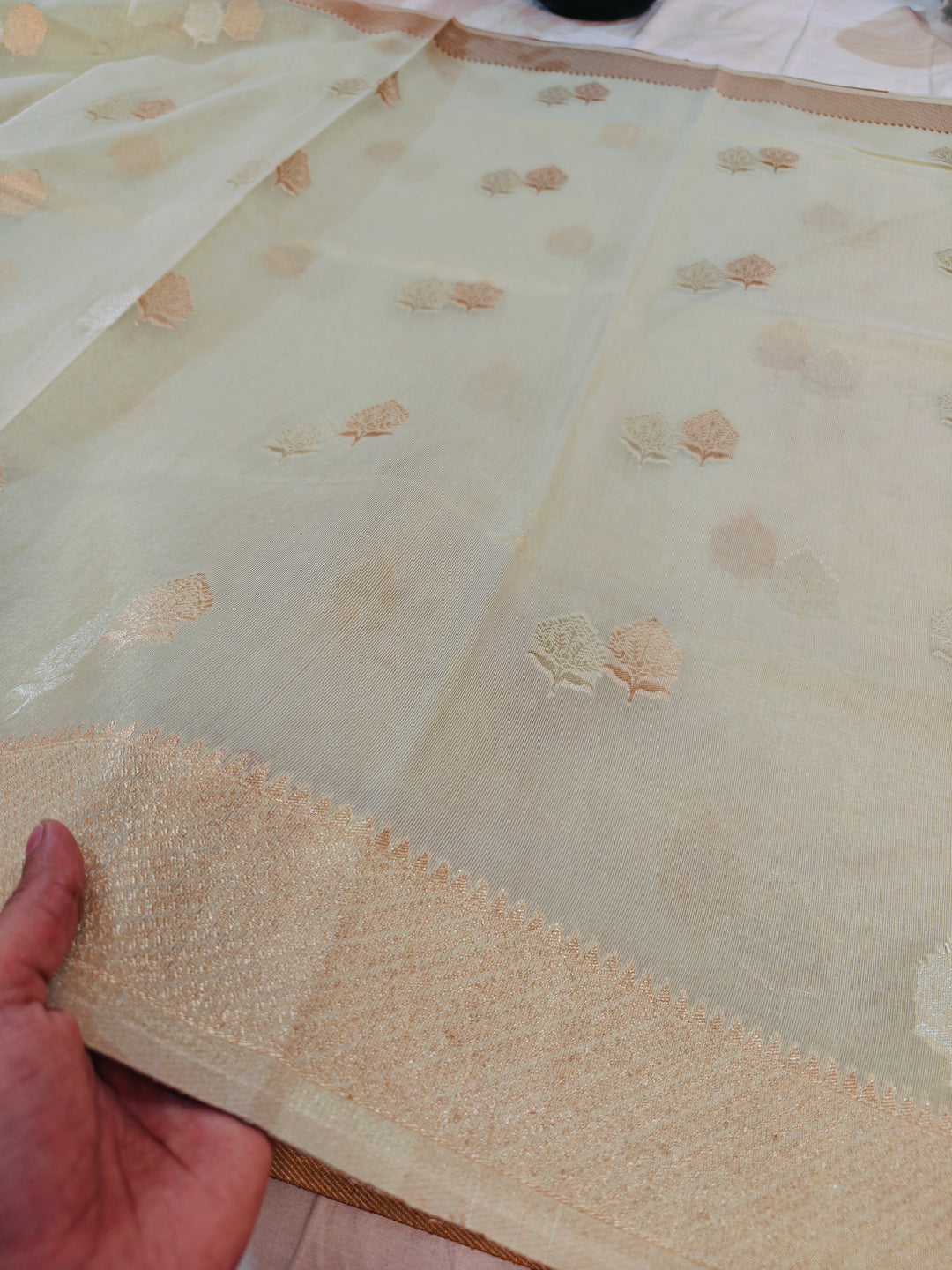BANARASI PAPER TISU IN IVORY SHADE INTRICATE ZARI WOVEN