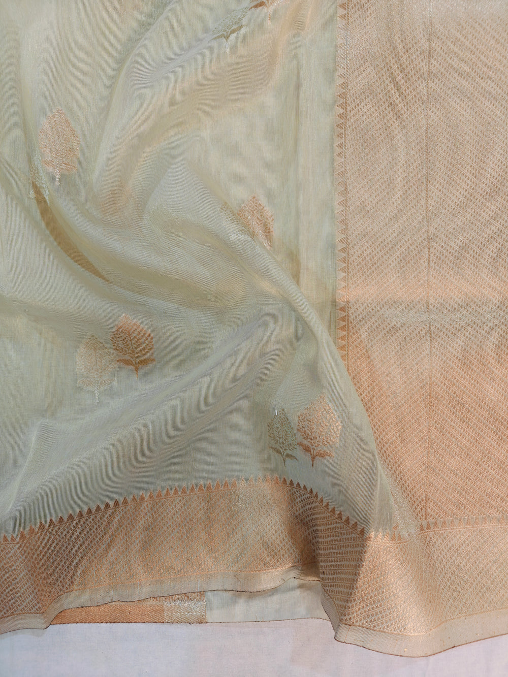 BANARASI PAPER TISU WITH SEA GREEN SHADE INTRICATE ZARI