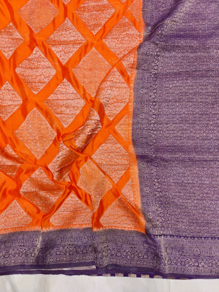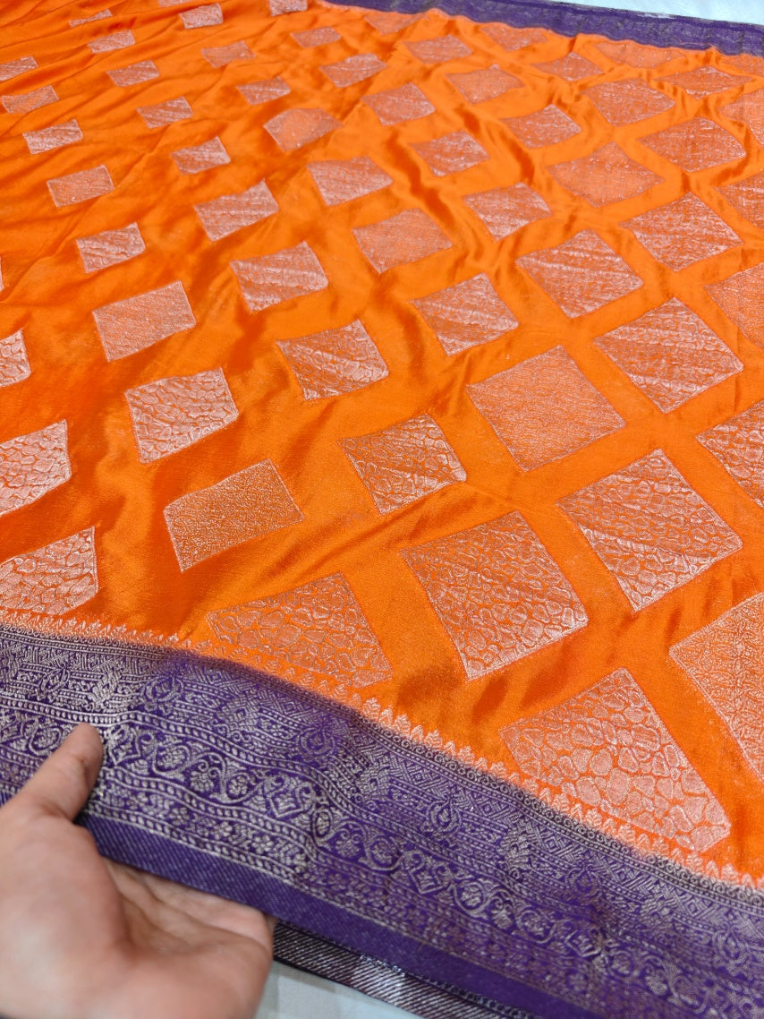 TANGY ORANGE CHINON CREPE GEORGETTE WITH VIOLET BORDER