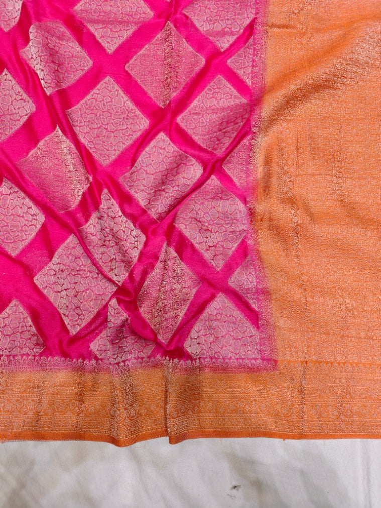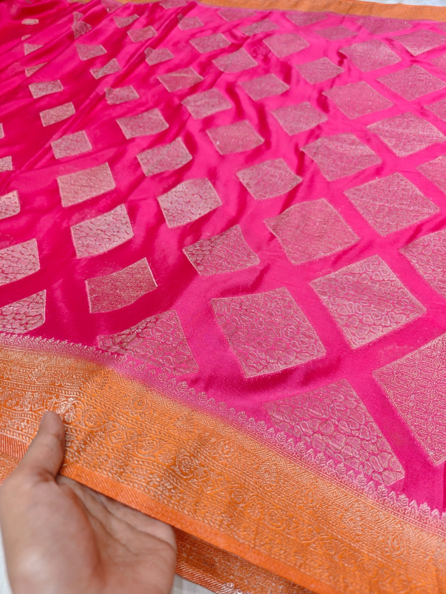 VIBRANT PINK CHINON CREPE GEORGETTE WITH ORANGE BORDER