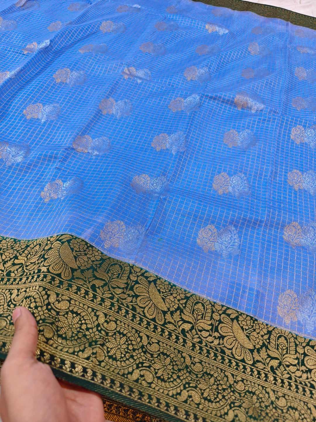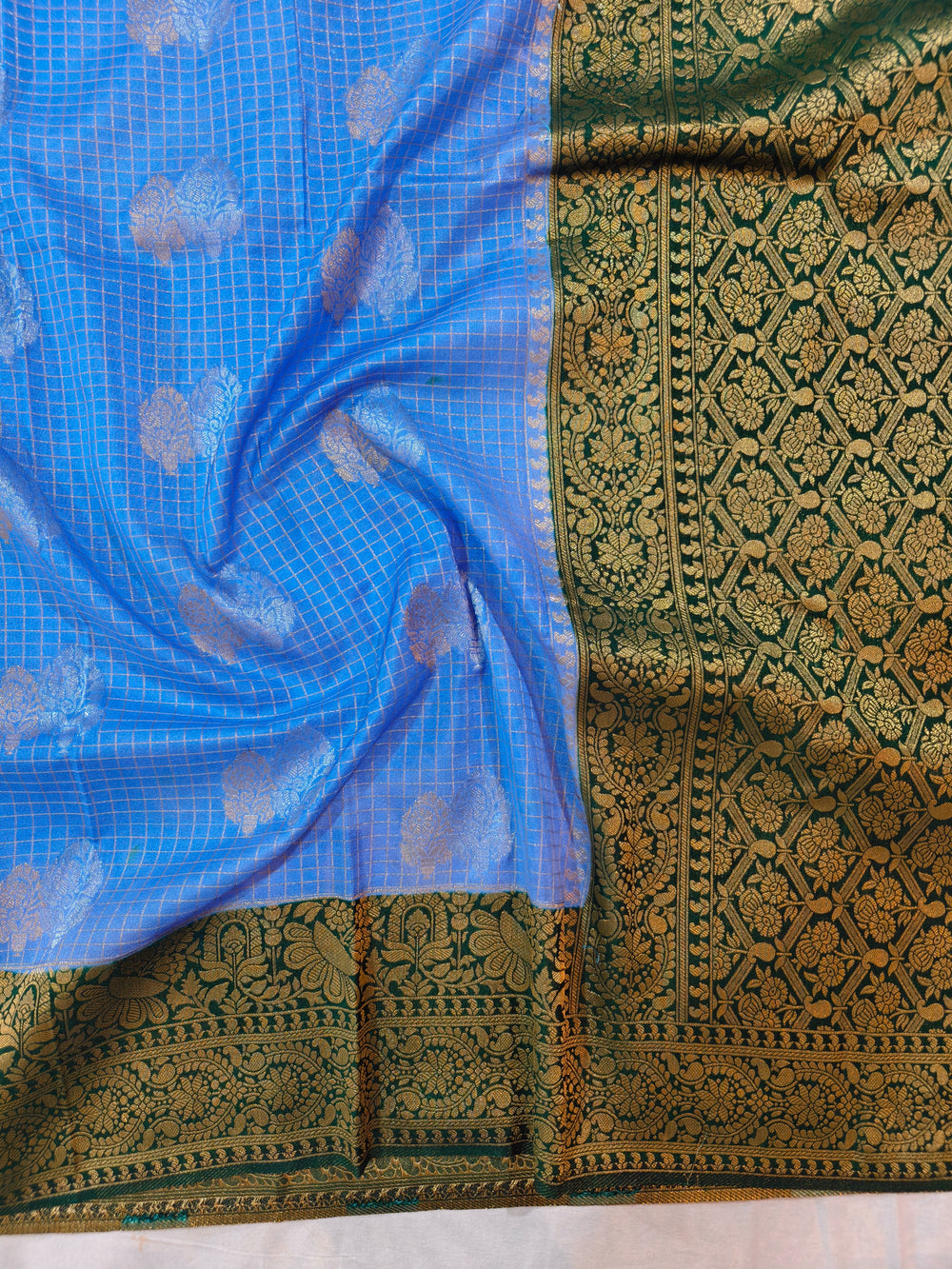 FEROZI CREPE GEORGETTE CHECKS WITH BOTTLE GREEN BORDER