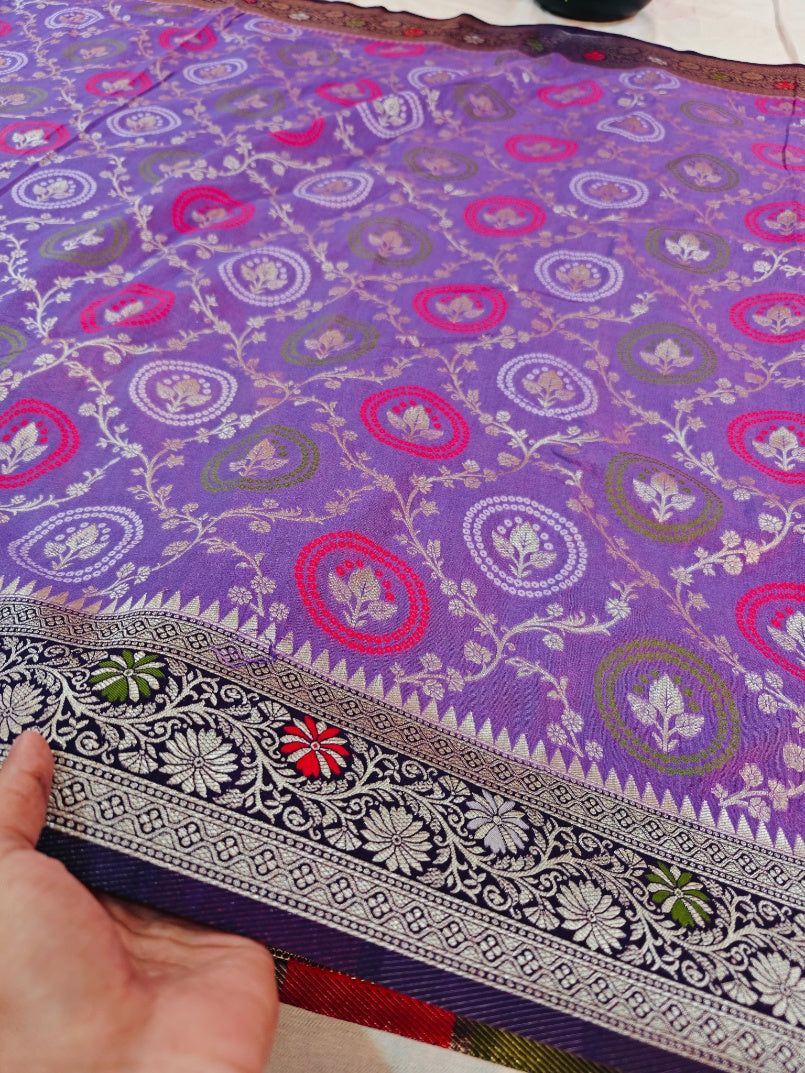 LAVENDER KHADDI GEORGETTE MINAKARI WITH NAVY BLUE BORDER