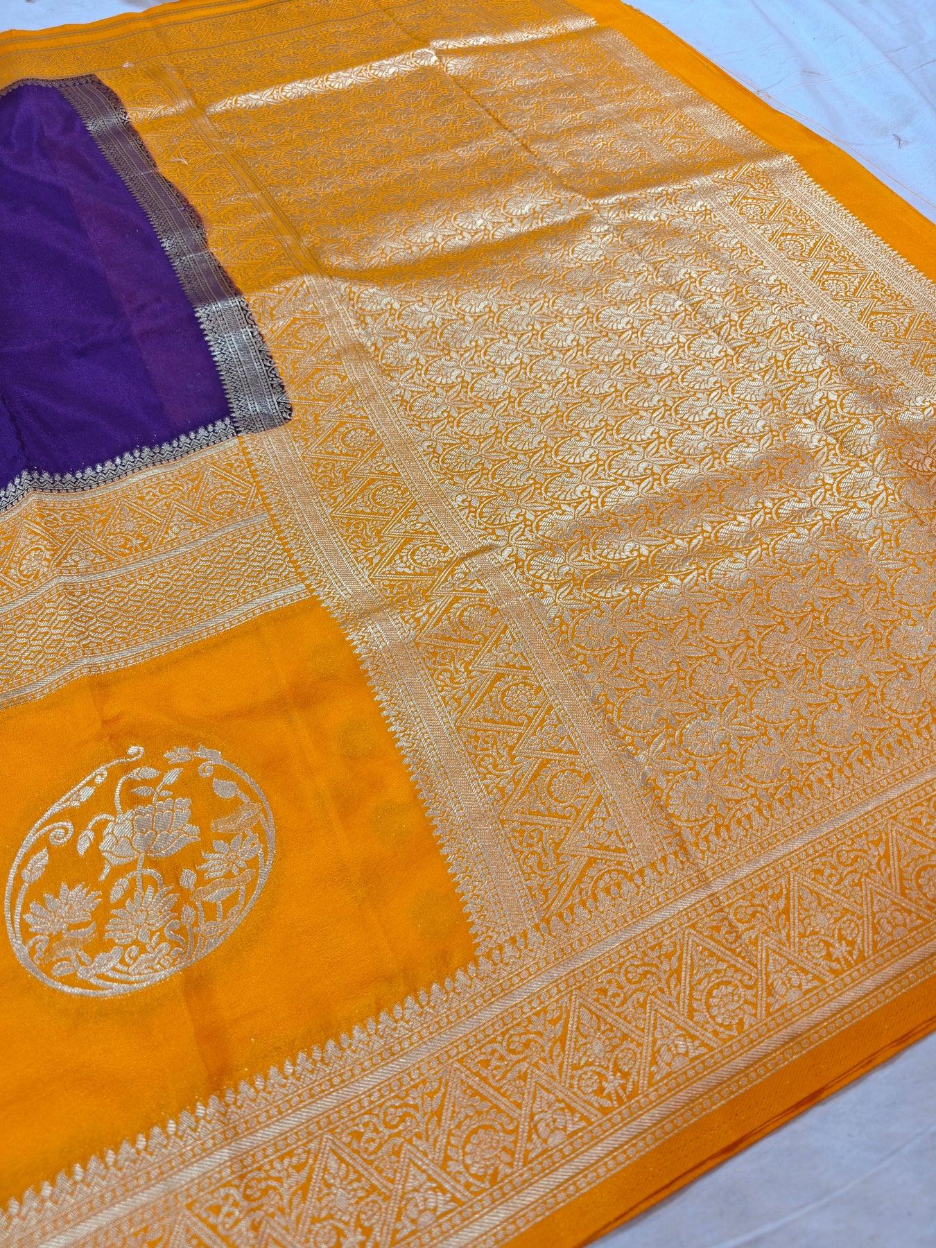 Ideal for weddings, festive occasions, or evening events, this Khaddi Georgette saree offers luxurious drape, vibrant energy, and timeless traditional charm.