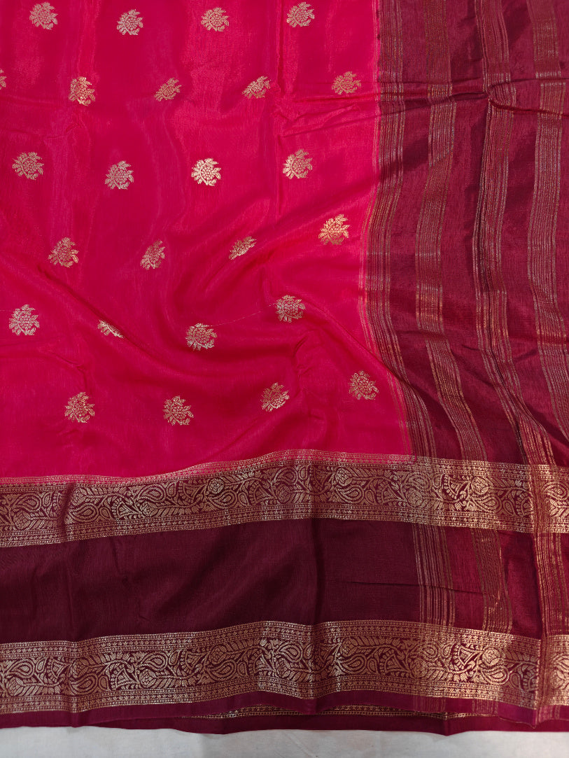 MAGENTA RUSSUAN SILK WITH BABY PINK BORDER