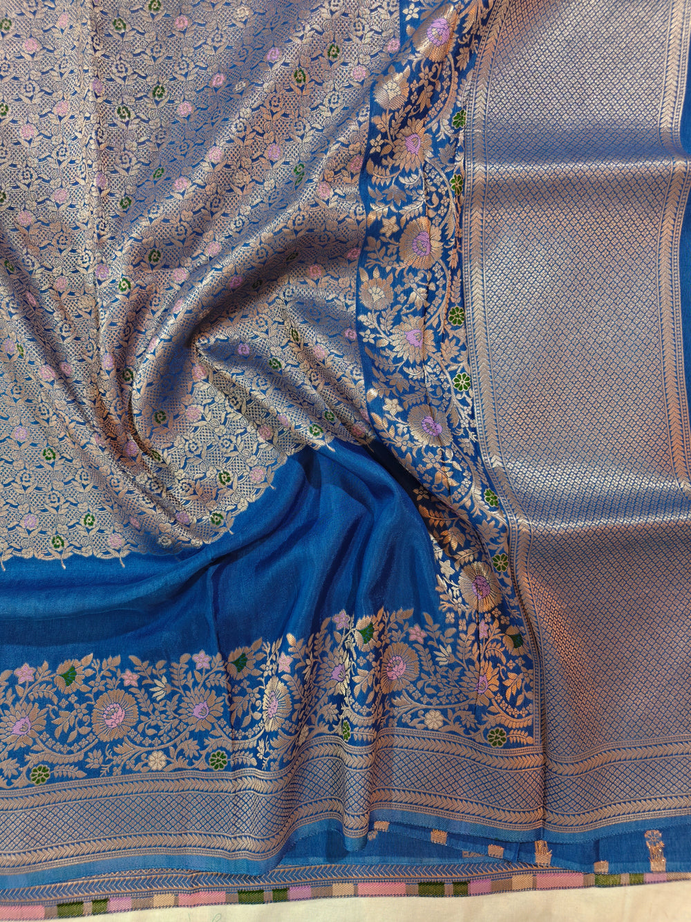 FEROZI BLUE WITH MAGENTA BORDER RUSSIAN SILK