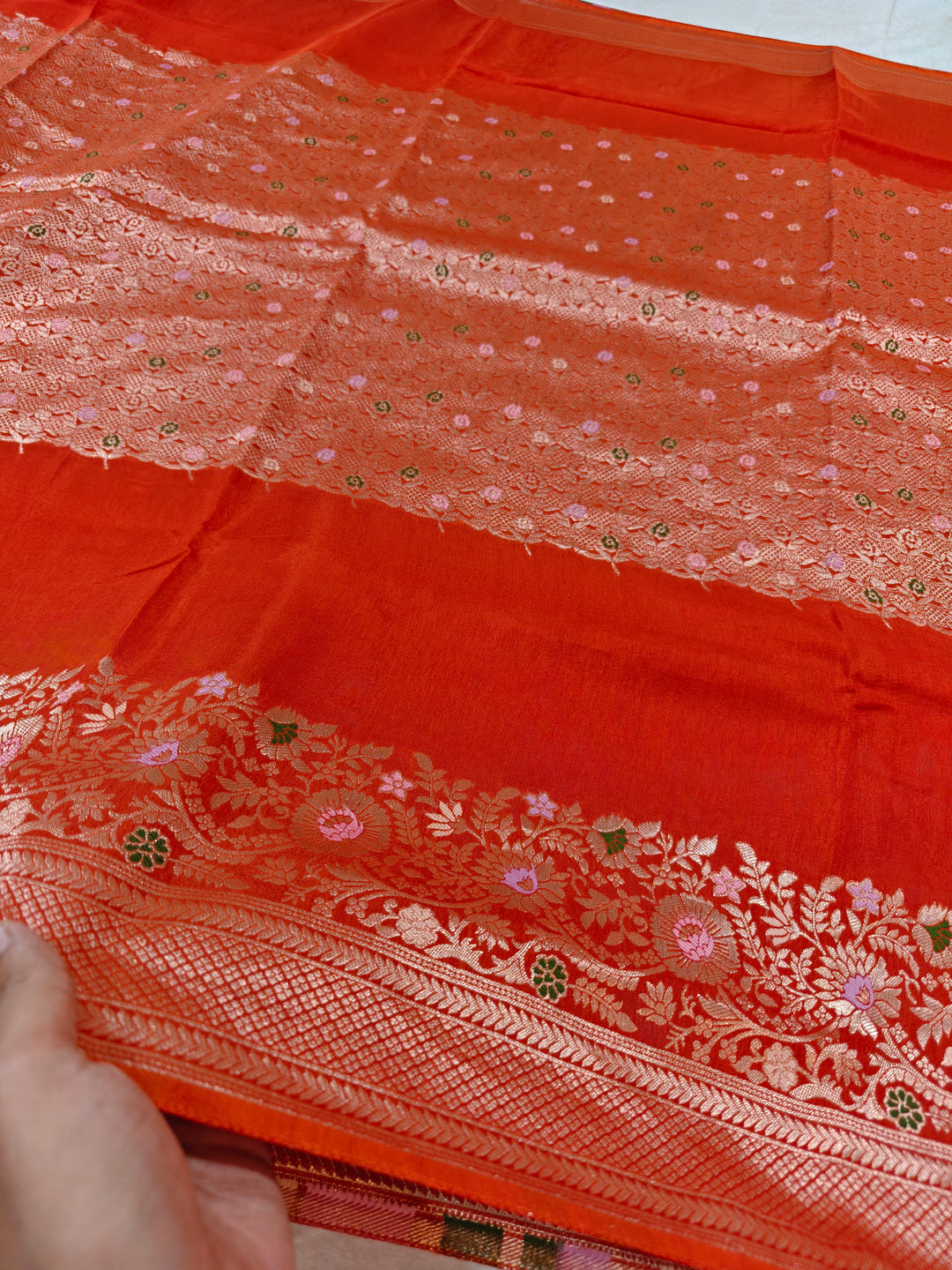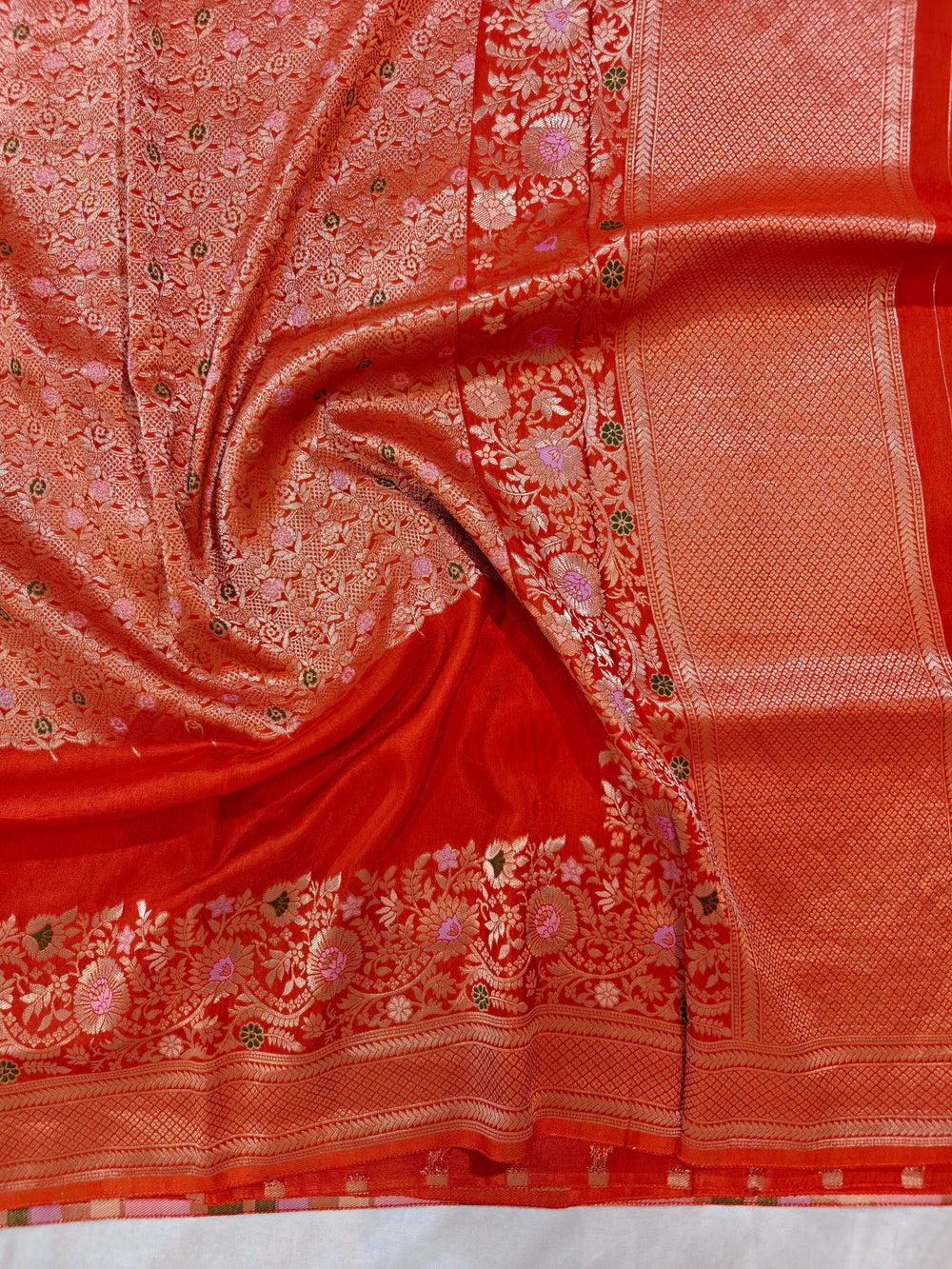 RUSSIAN SILK IN RANI COLOUR WITH VINE BORDER