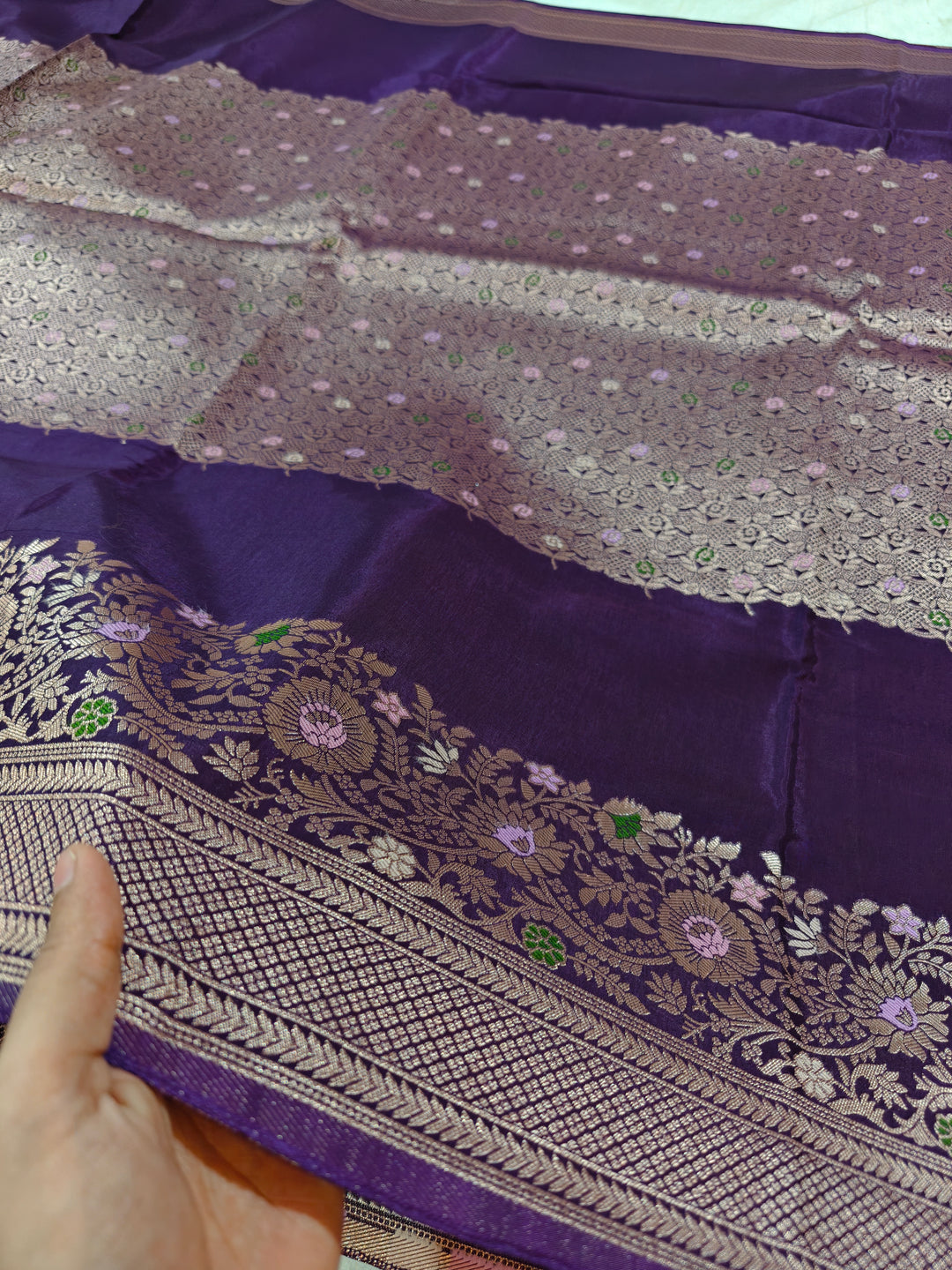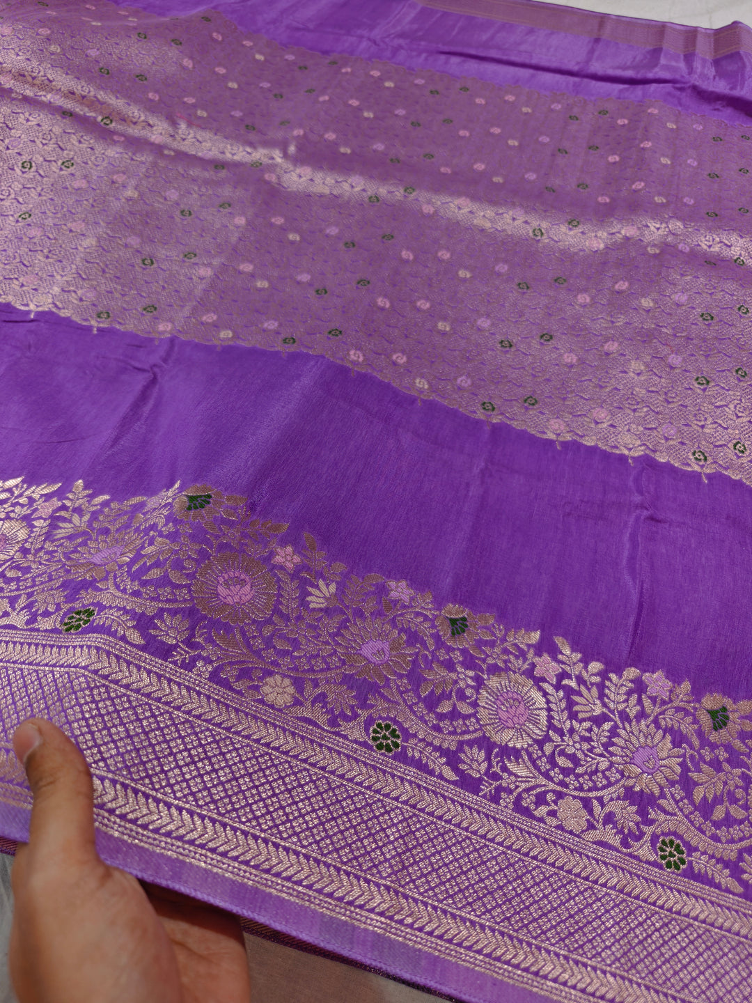 LAVENDER COLOUR RUSSIAN SILK WITH VINE BORDER