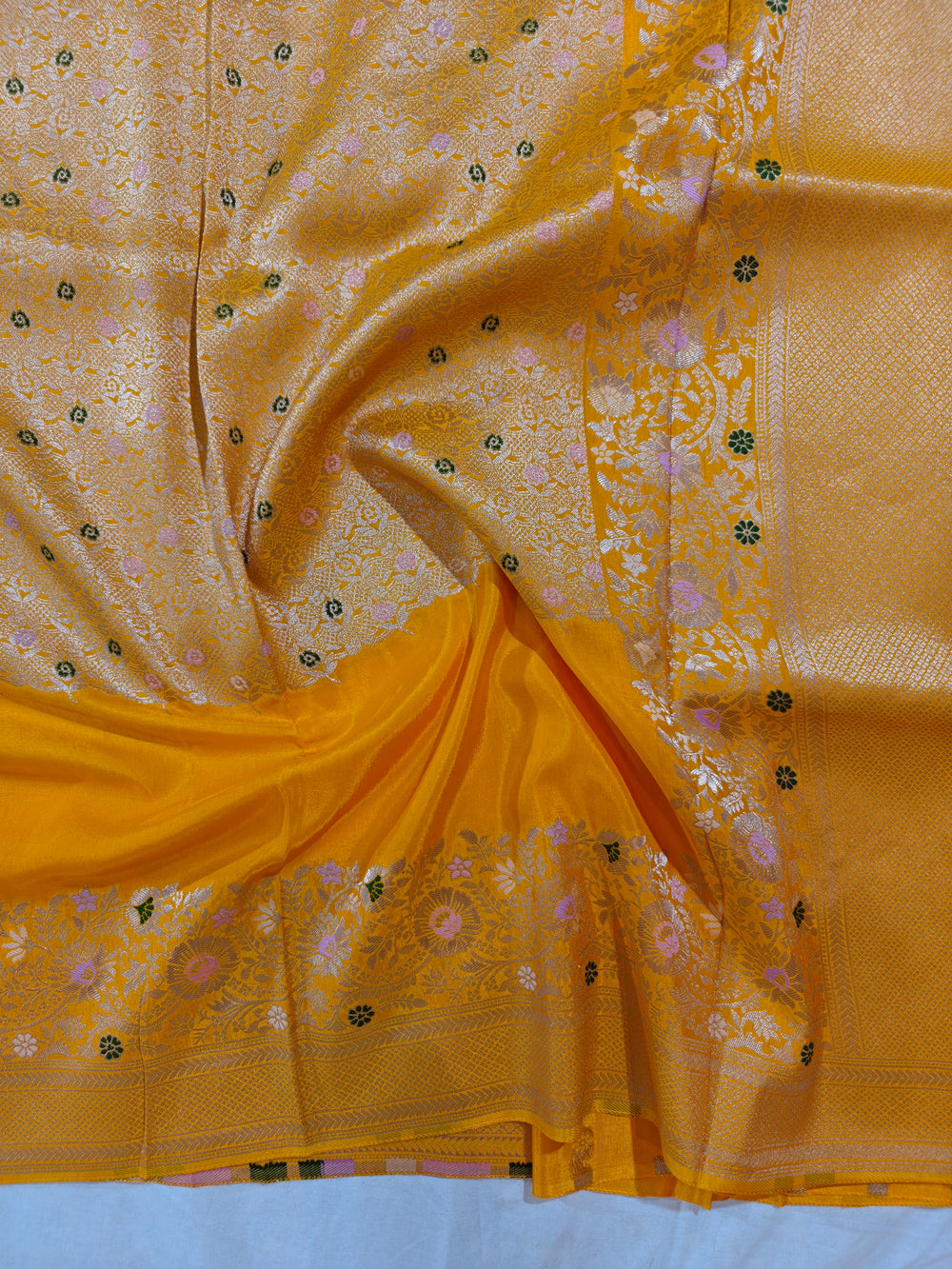 GOLD RUSSIAN SILK WITH BOTTLE GREEN BORDER