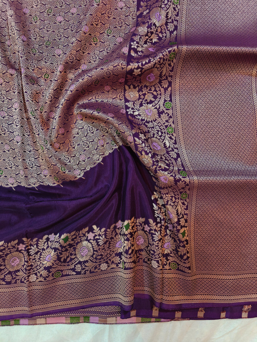 PURPLE RUSSIAN SILK WITH SEA GREEN BORDER