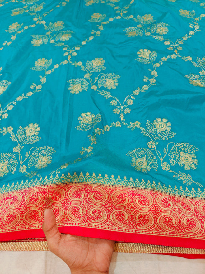 TORQOUISE BLUE RUSSIAN SILK WITH RED BORDER