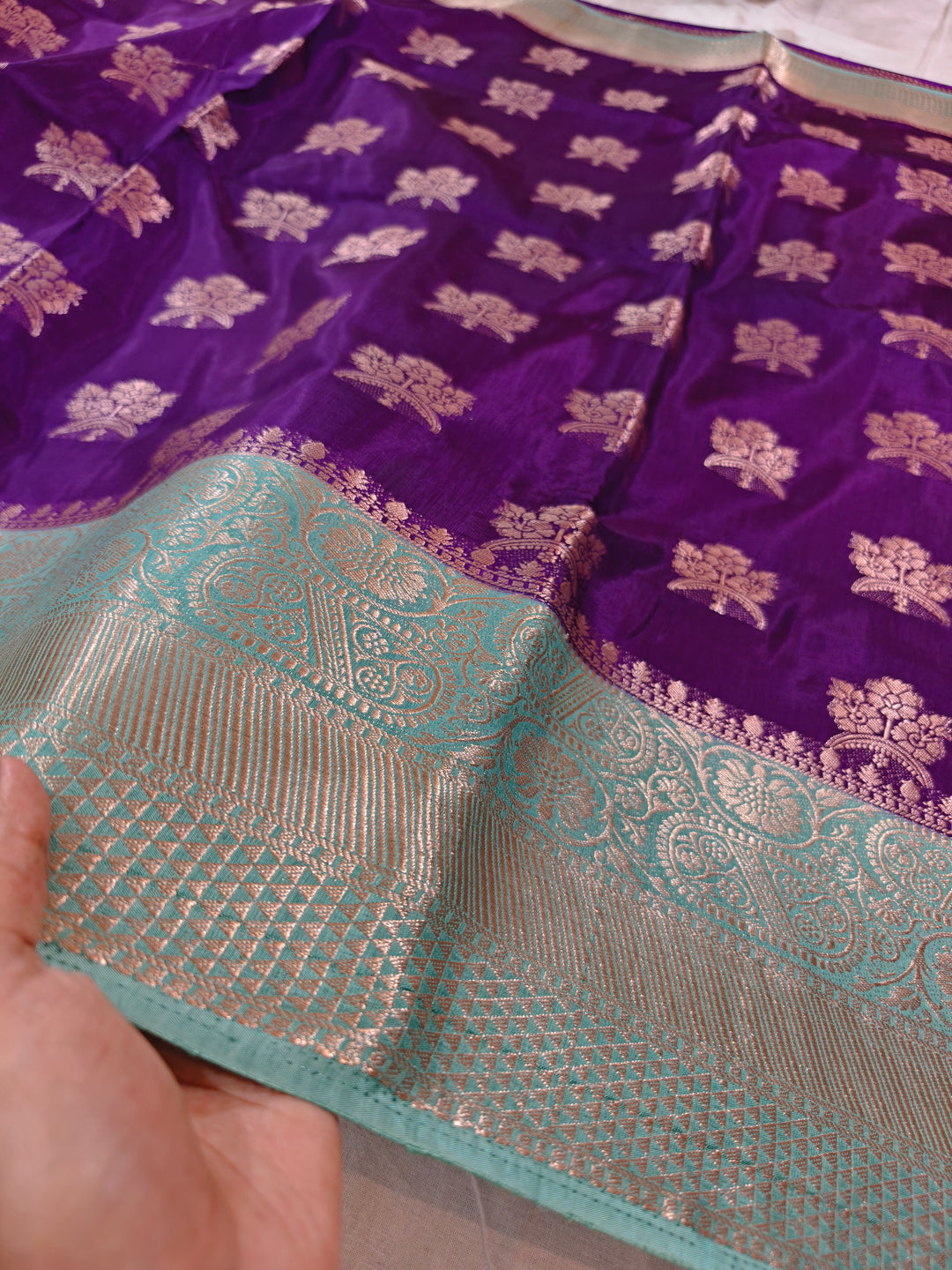 PURPLE RUSSIAN SILK WITH SEA GREEN BORDER