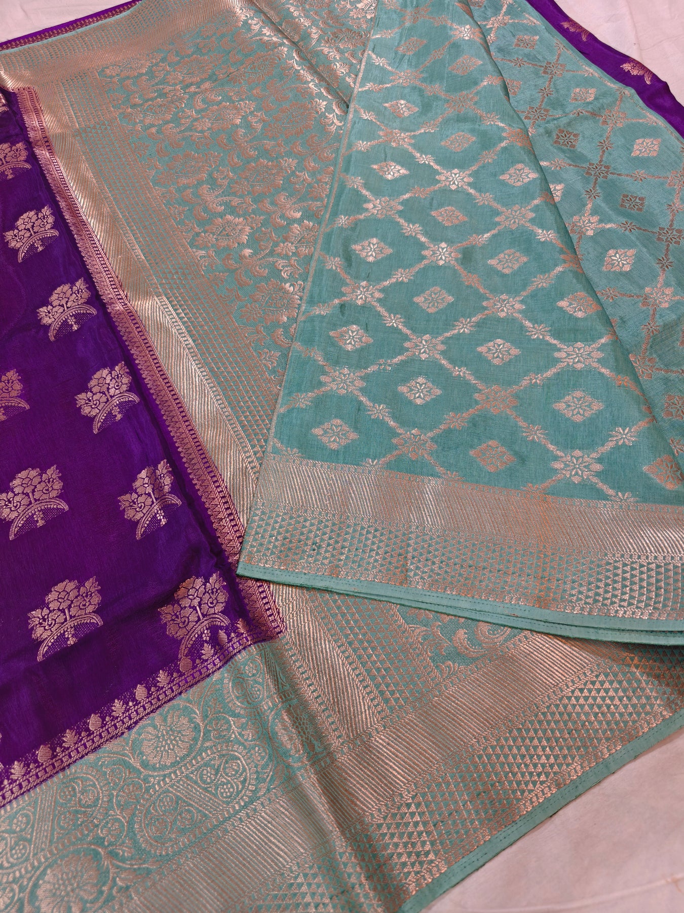 PURPLE RUSSIAN SILK WITH SEA GREEN BORDER